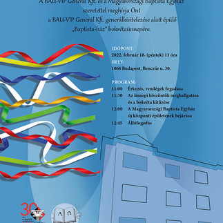 Ma a Magyarországi Baptista Egyházzal közösen rendeztük meg a BAU-VIP Generál Kft. kivitelezésében épülő új központjuk Bokrétaünnepét. A bensőséges, jó hangulatú eseményen az ünnepi beszédek elhangzása és egy kis zenés műsor után kitűztük a „bokrétát”, azaz a szalagokkal feldíszített fácskát a ház tetejére, majd együtt bejártuk a szerkezetkész épületet, s a ragyogó napsütésben megcsodáltuk a toronyból a szép kilátást. A program vendéglátással, finom étellel-itallal és jókedvű beszélgetésekkel zárult. Következzen most egy részlet Vantal István ünnepi beszédéből: